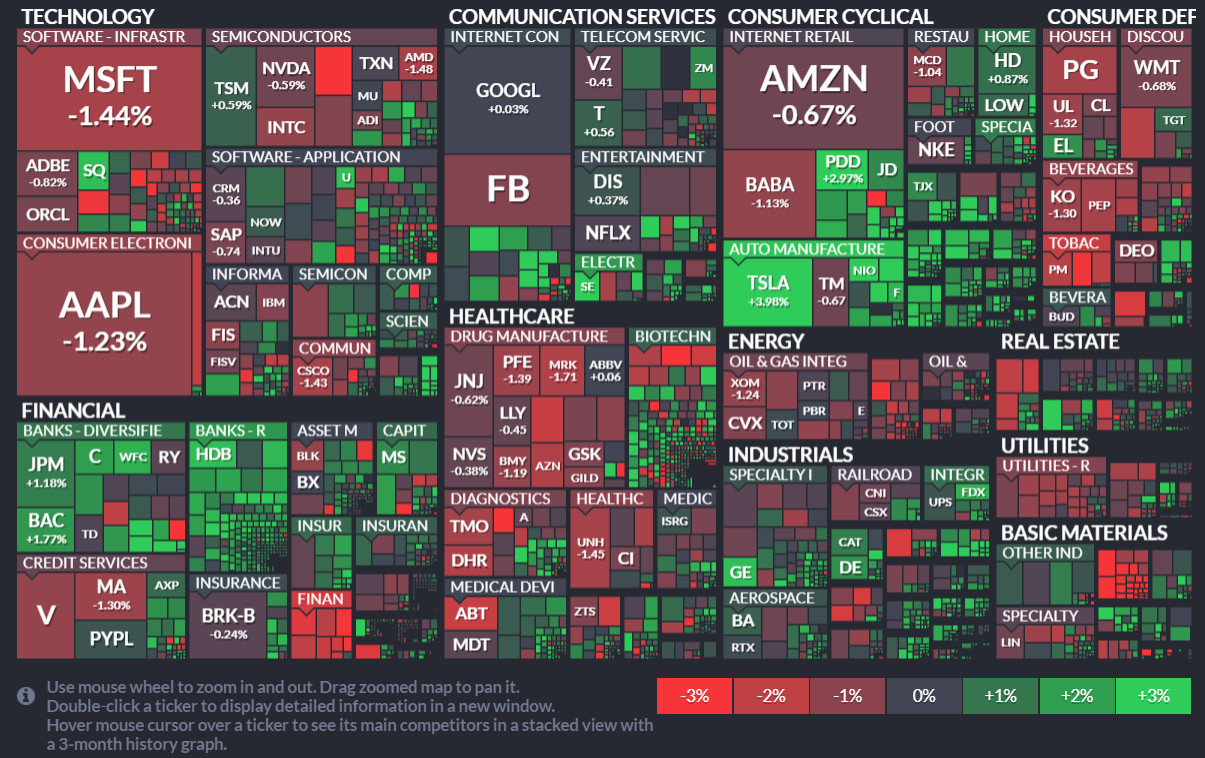 - 일루미나(-6.59%)는 연방거래위원회(FCC)로부터 조기 암 진단 테스트 기업 그레일 인수 건에 대해 미국 시장에서의 관련 혁신을 저해할 수 있다는 우려를 제기한 것이 악재로 작용하여 약세