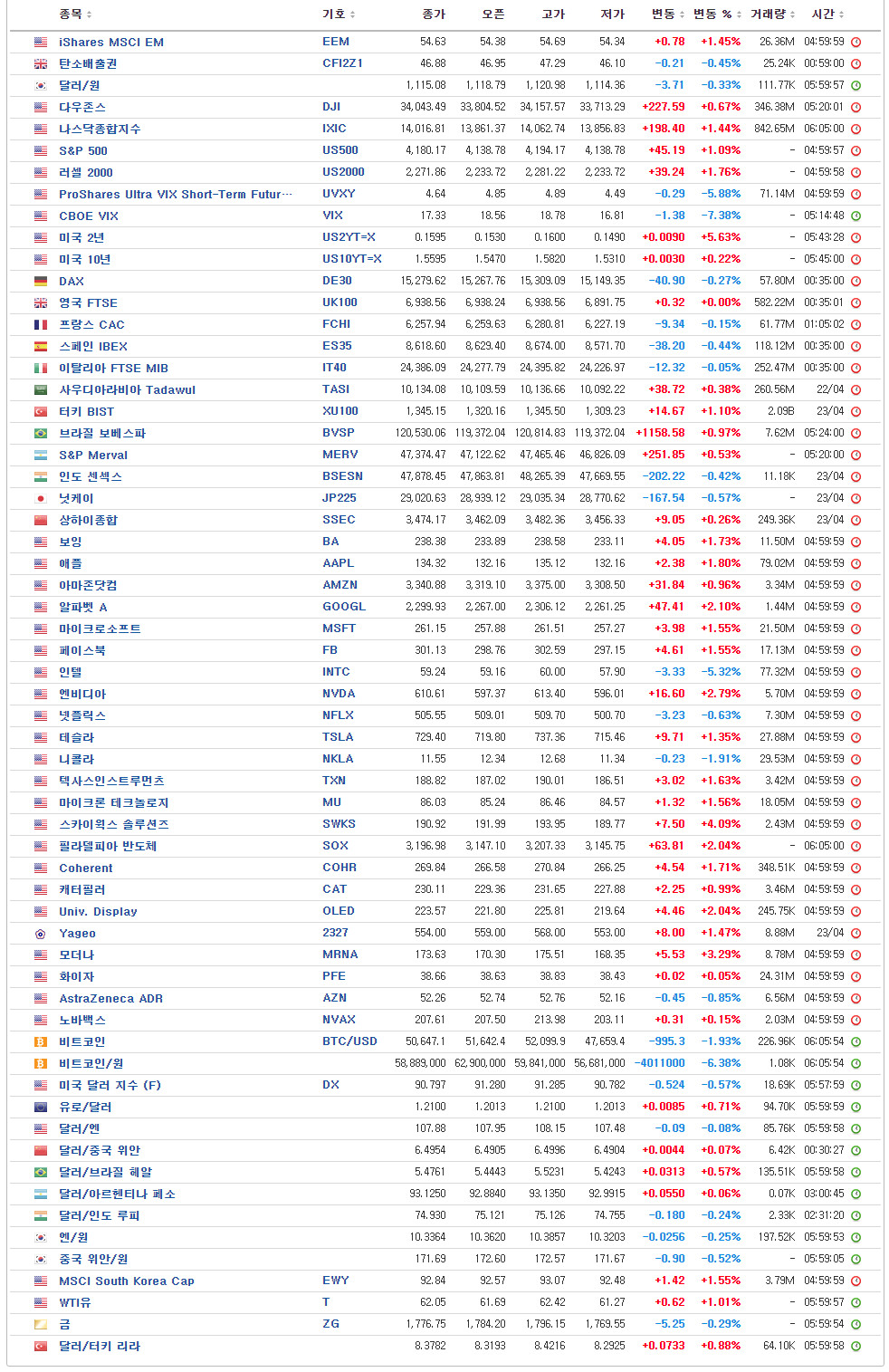| 4월 21일(수) 해외마감시황, 장전 봐야할 주요뉴스 (0) | 2021.04.21 |