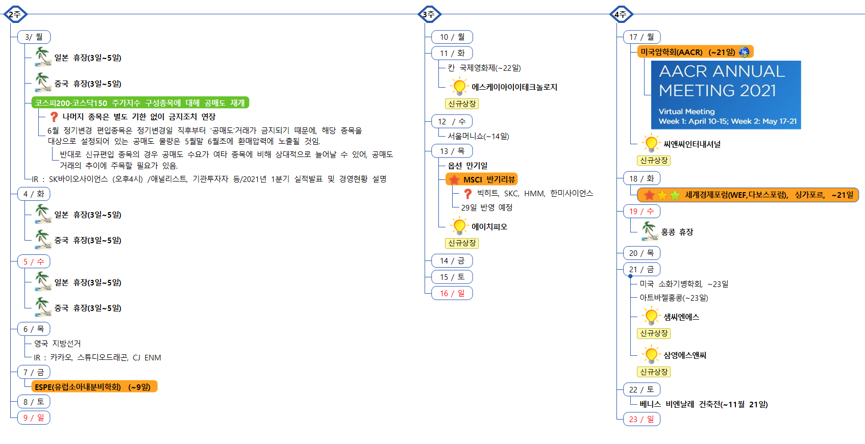 증시캘린더는 개인적으로 관련된 소식을 확인후 작성한 일정이라 변동 또는 오류의 소지가 있습니다.