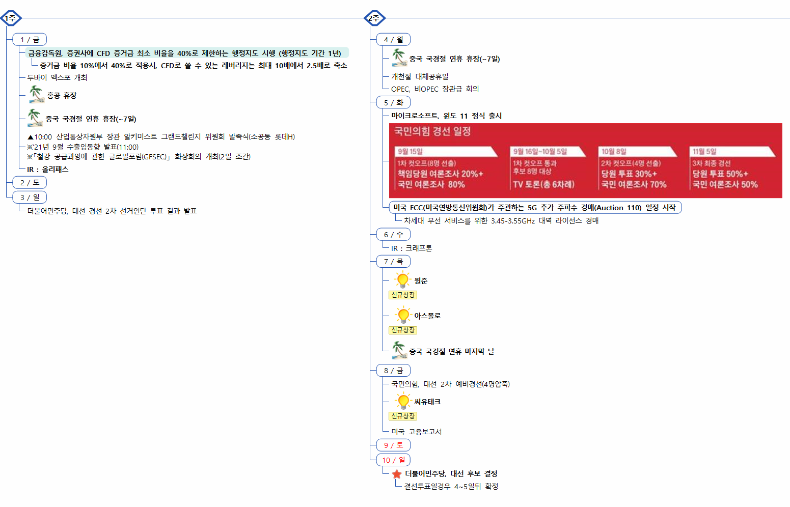 1) 증시캘린더는 개인적으로 관련된 소식을 확인후 작성한 일정이라 변동 또는 오류의 소지가 있습니다.