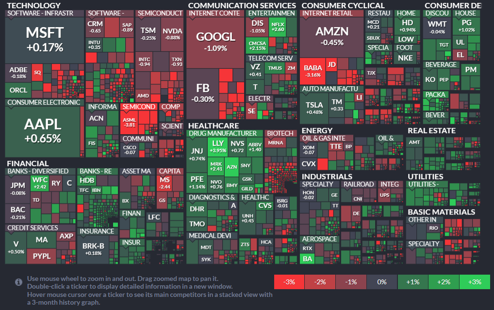 | DOW | 34,390.72 | 90.73 | 0.3% | 18/12/0 |