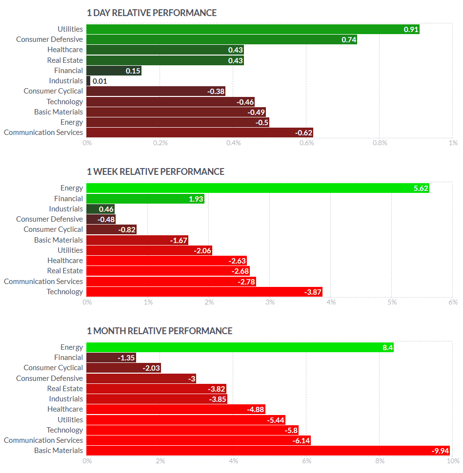 | 필수소비재 | XLP | 70.1 | 0.9% | 안개 | -3.3% | 1.1% | 11.5% | |