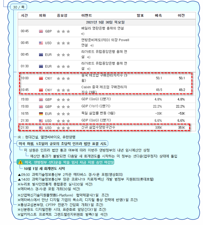 2021년 9월 30일 매크로 데일리