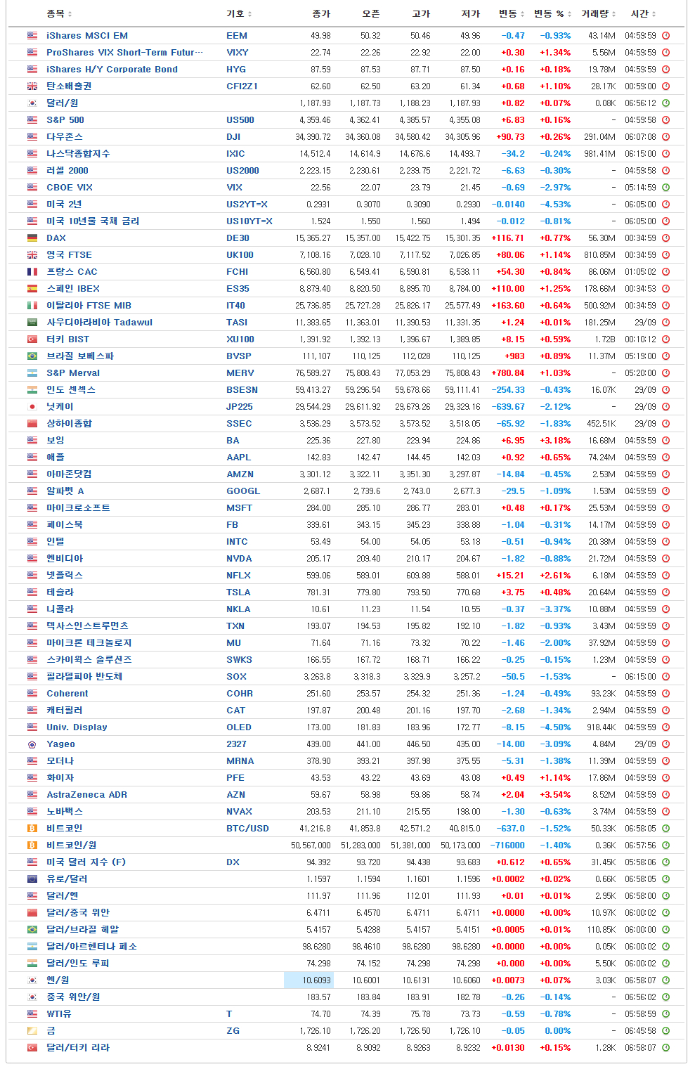 [글로벌시장 지표 / 9월 30일 오전 6시 현재]