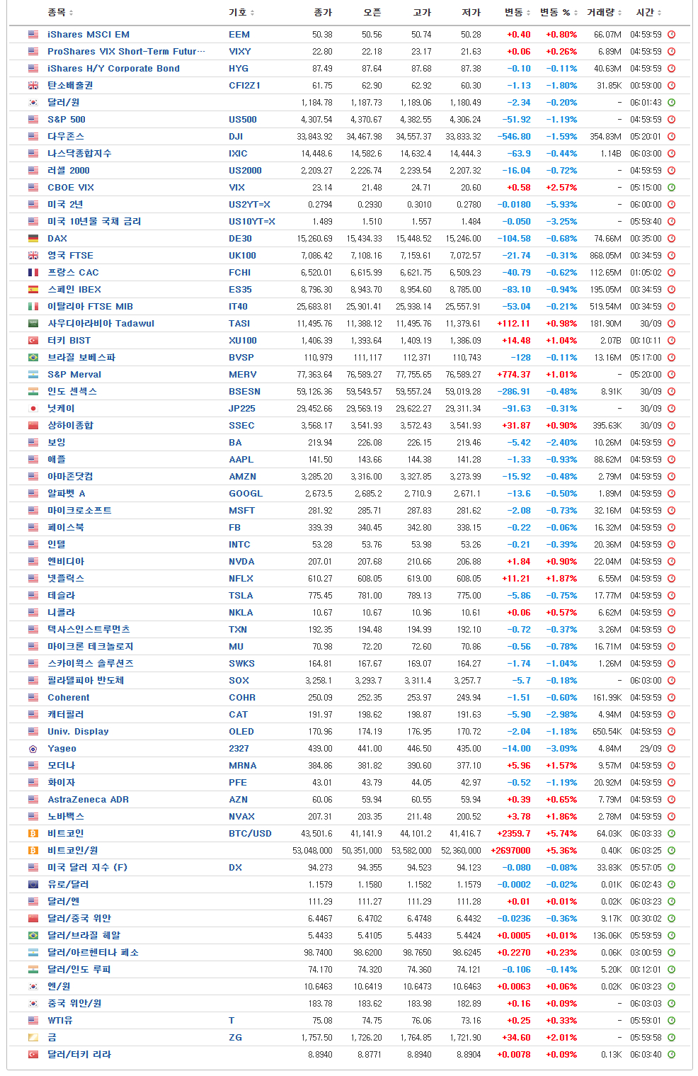 [글로벌시장 지표 / 10월 1일 오전 6시 현재]