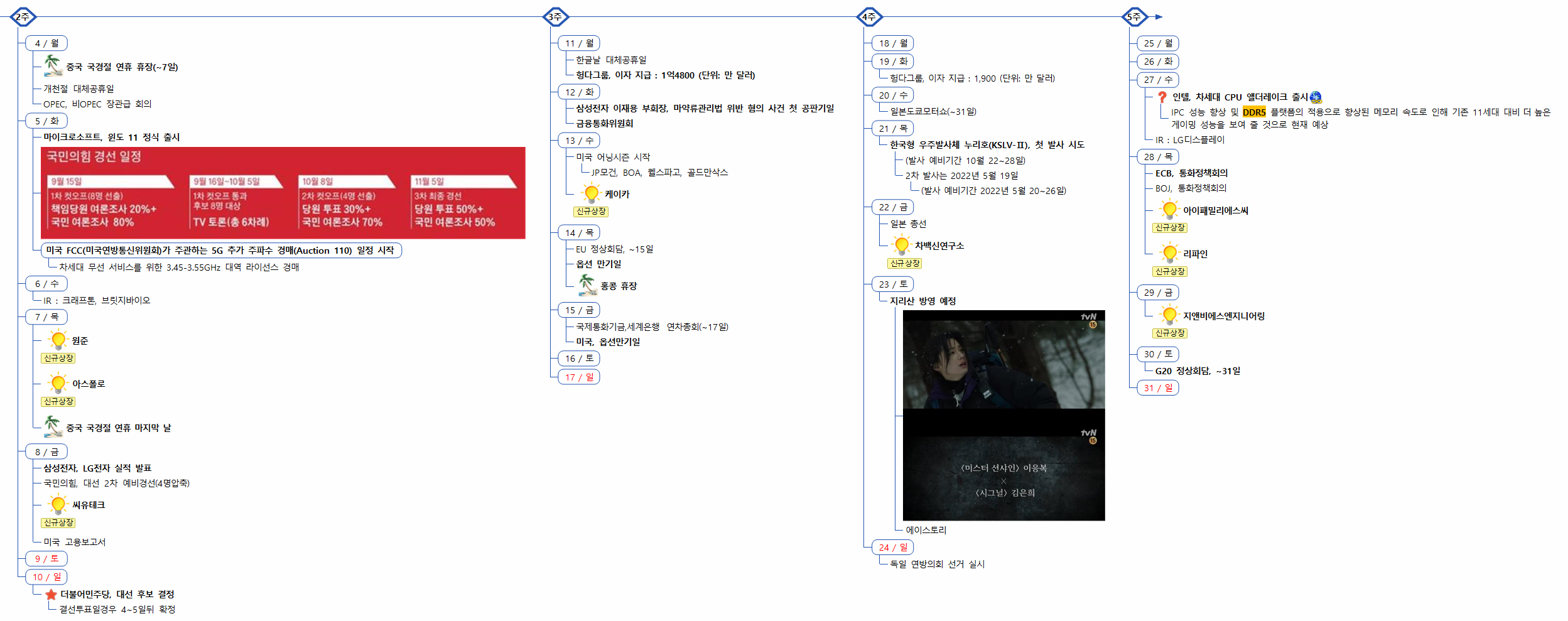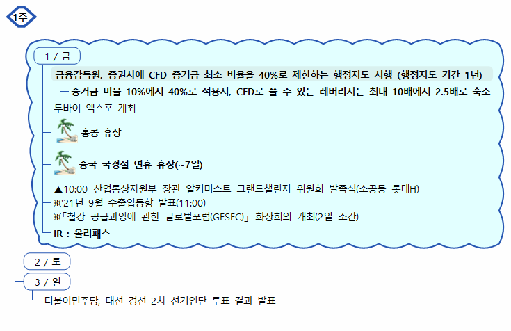 1) 증시캘린더는 개인적으로 관련된 소식을 확인후 작성한 일정이라 변동 또는 오류의 소지가 있습니다.