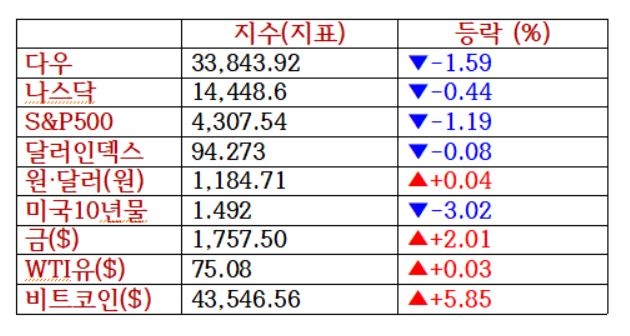 ■ 국채금리 하락·정치적 불확실성 지속…3대 지수 일제히 하락
