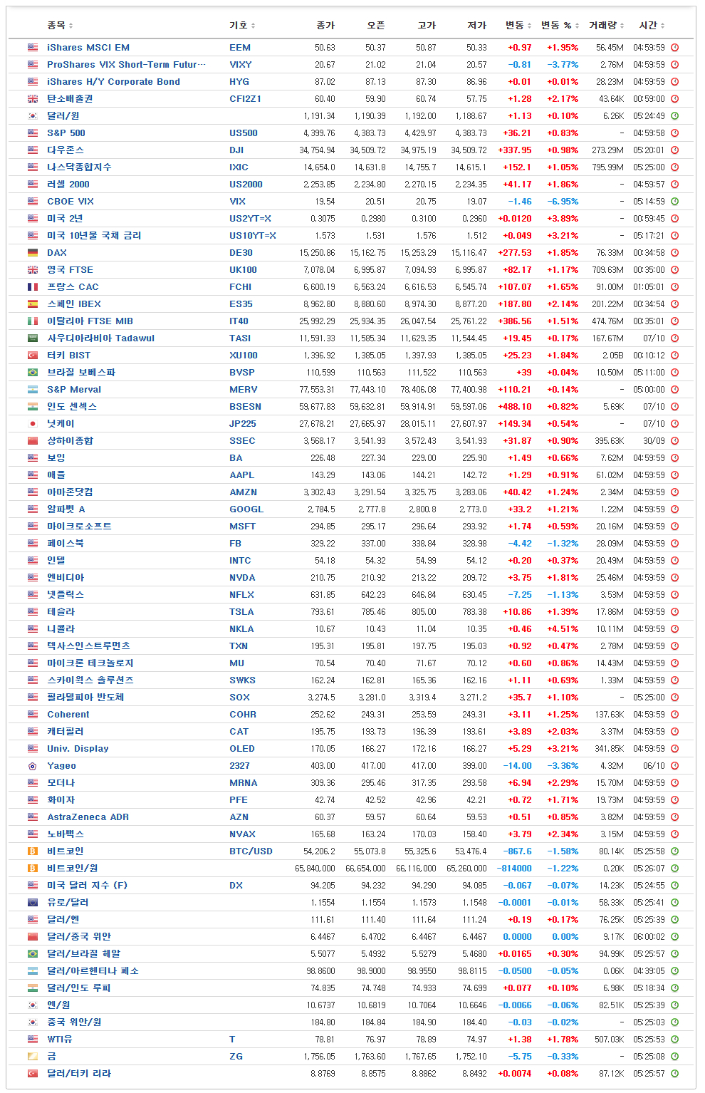 [글로벌시장 지표 / 10월 8일 오전 6시 현재]