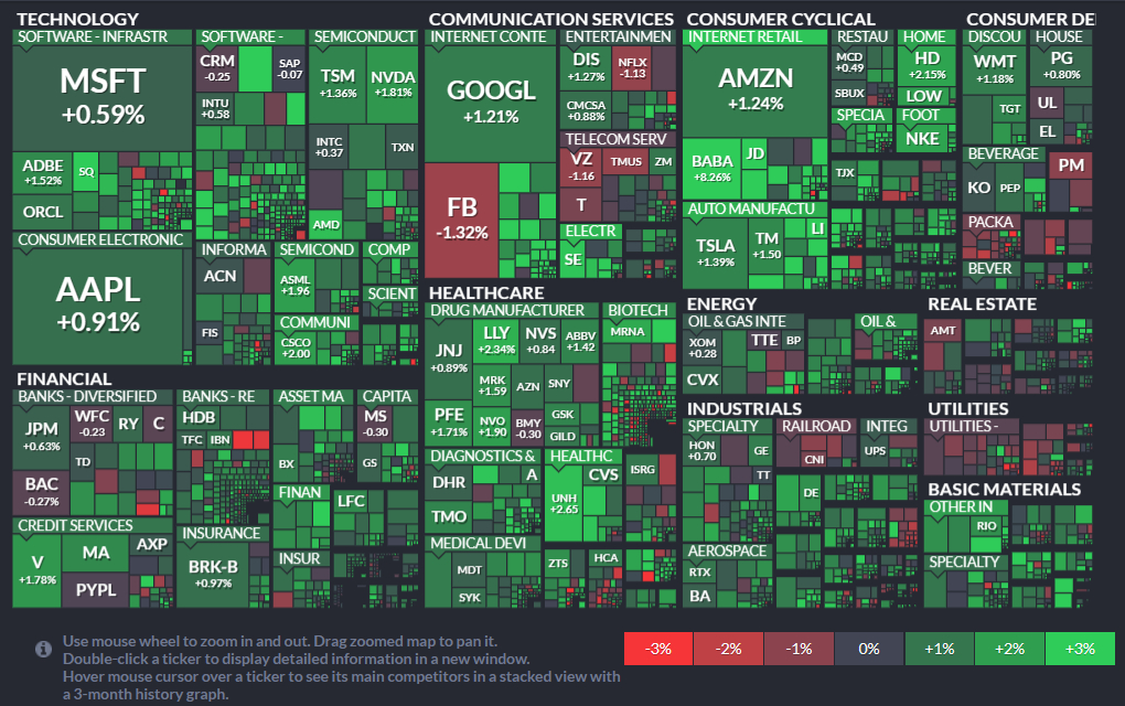 | DOW | 34,754.94 | 337.95 | 1.0% | 25/5/0 |