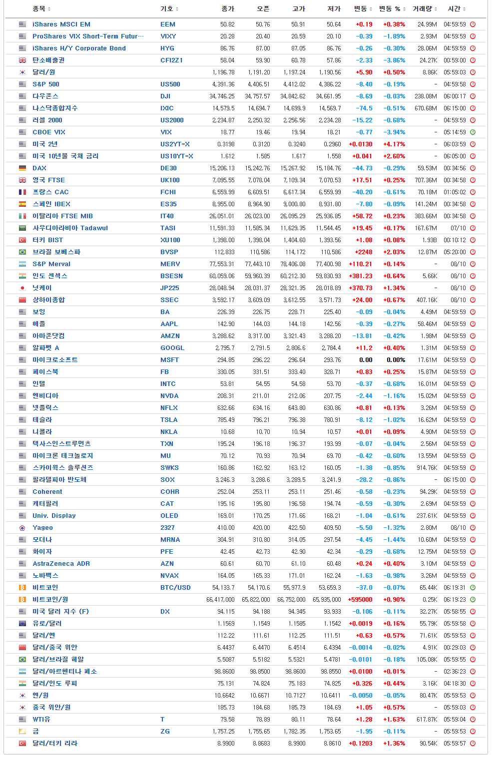 | VIX지수 | 18.77 | -0.77 | -3.9% |