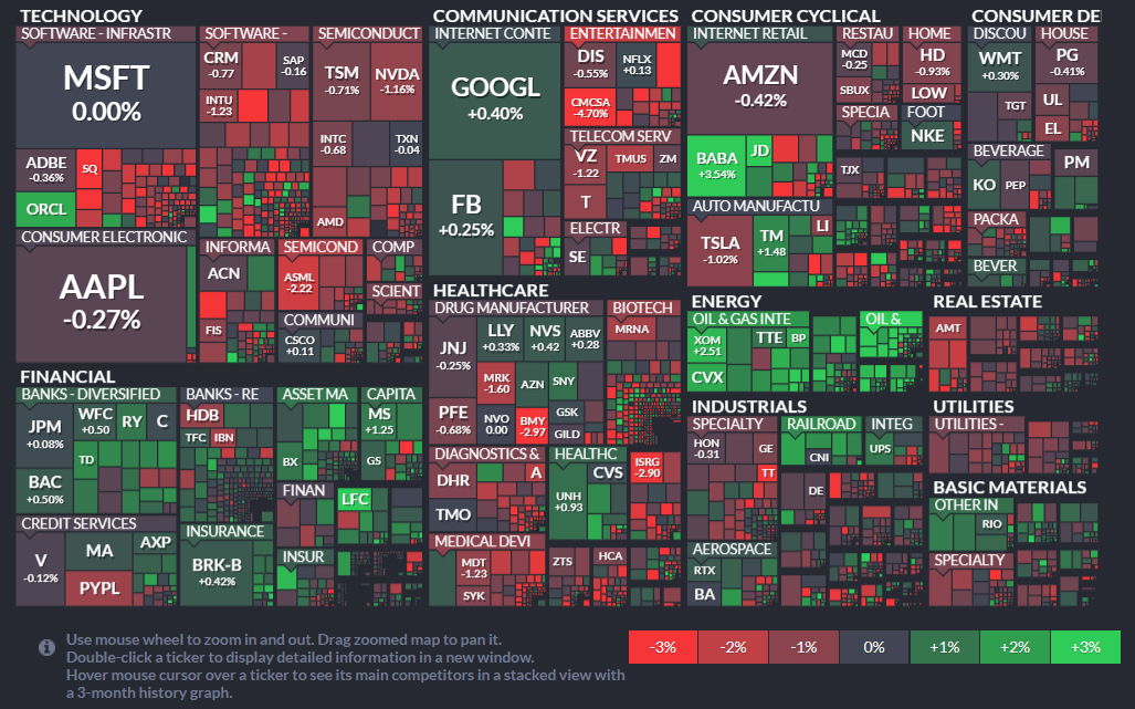 섹터별 ETF에서는 에너지(XLE/+3.1%), 금융(XLF/+0.5%)이 상승한 반면, 산업재(XLI/0.0%), 유틸리티(XLU/-0.7%), 부동산(VNQ/-0.9%) 섹터는 하락 마감. 원유재고 부족과 수요증가로 금일 원유 가격이 상승함에 따라 에너지 섹터 상승 마감. 개별주식으로는 옥시덴털페트롤리엄(OXY/+3.6%), 엑슨모빌(XOM/+2.5%)이 상승 마감. 금융 섹터에서는 스테이트스트리트(STT/+2.4%)와 뱅크오브뉴욕멜론(BK/+2.4%)이 상승 마감.