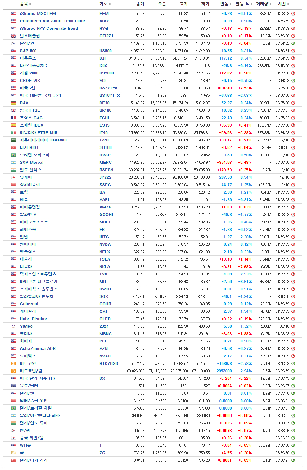 [글로벌시장 지표 / 10월 13일 오전 6시 현재]