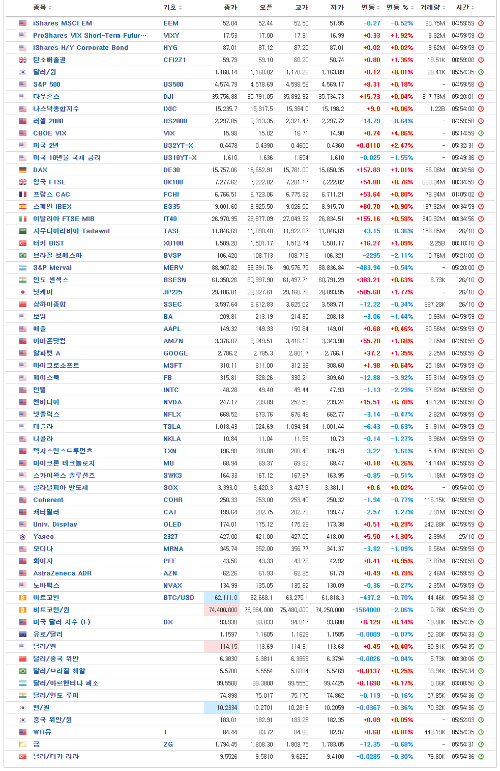 [글로벌시장 지표 / 10월 27일 오전 6시 현재]