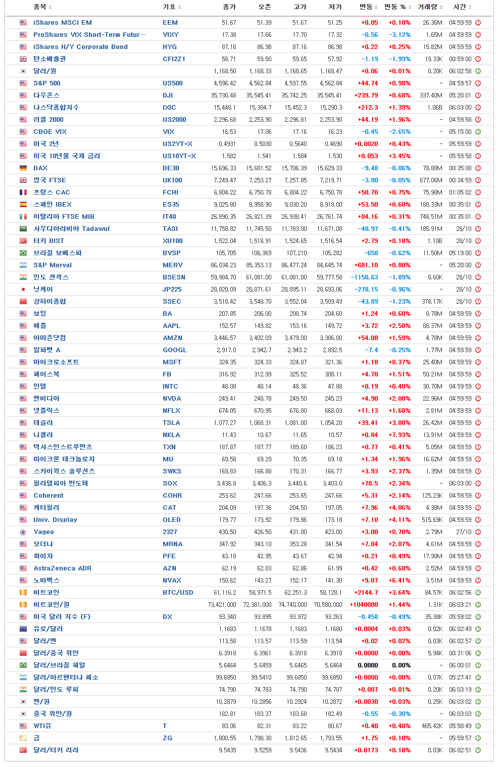 [글로벌시장 지표 / 10월 29일 오전 6시 현재]