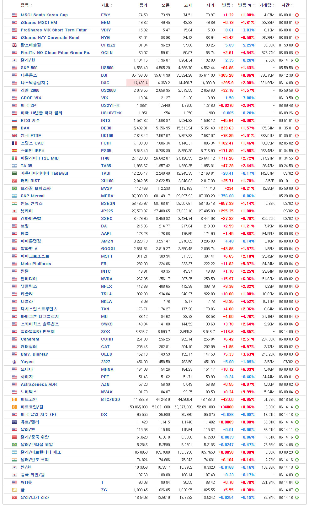 U.S. Market Closing – 06:00 기준