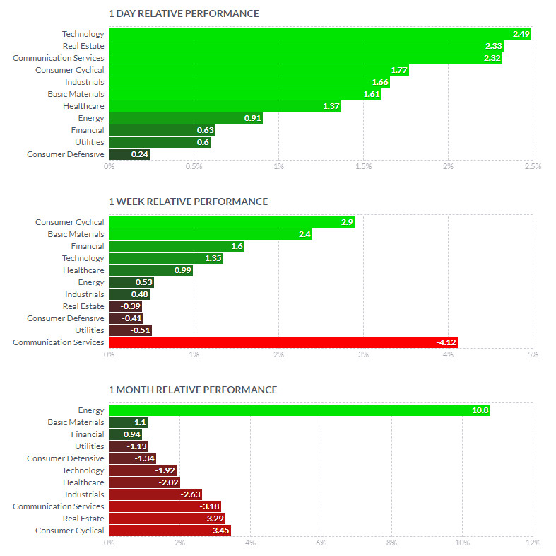 의견 상향을 받은 AMD를 중심으로 엔비디아 6% 마이크론 5% 등 반도체주들이 강세를 이끌었고 메타가 5%이상 오르면서 여타 기술주들에게 안도감을 심어 준 점도 컸던 것으로 보입니다.