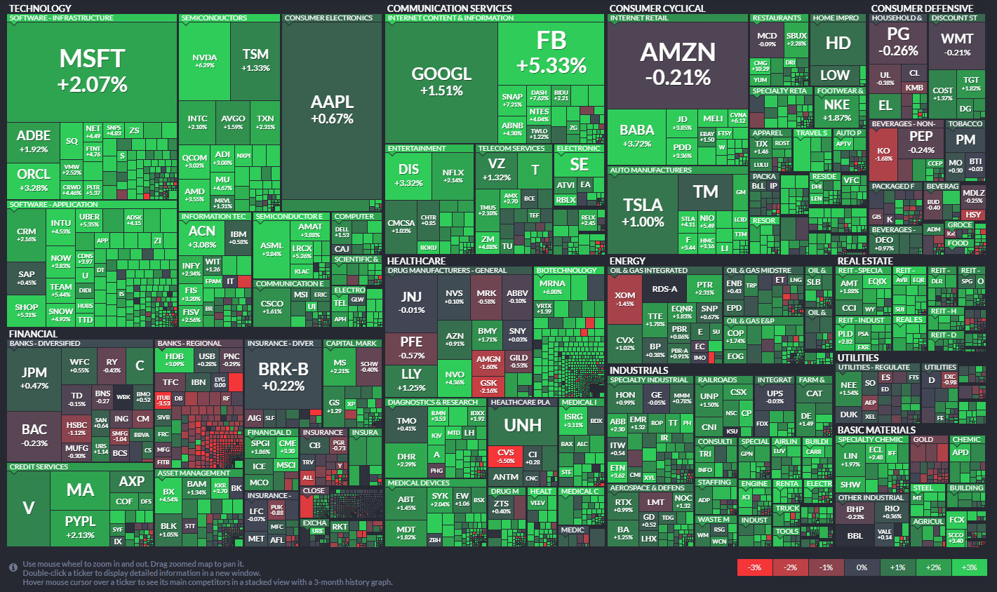 대형 성장주인 빅테크 주식들이 상승세를 보였다. 애플, 구글이 1% 안팎 상승률을 보였으며 마이크로소프트가 2% 상승하며 큰 폭 올랐다.