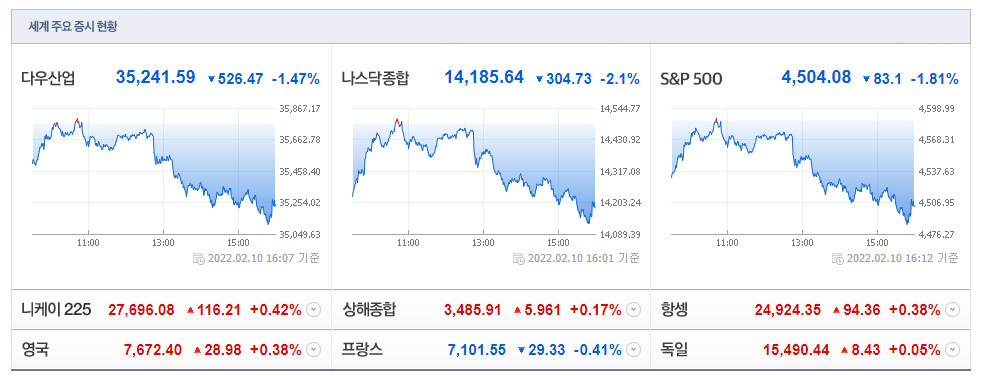 2월 10일(목) 증시캘린더 / 해외마감시황 (0) | 2022.02.10 |