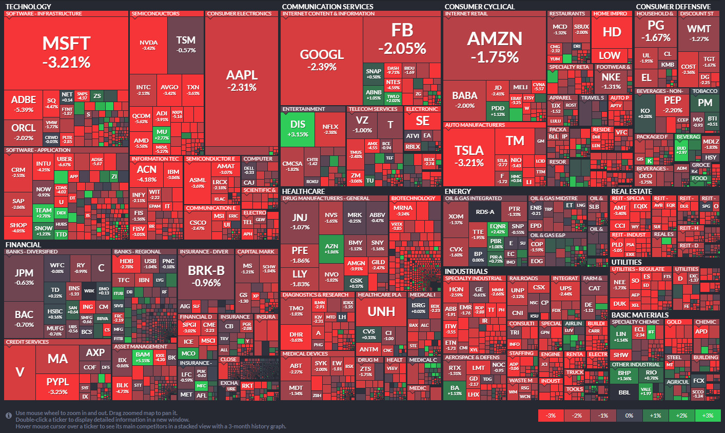 마이크로소프트는 2.8%, 애플은 2.4%, 구글 모회사 알파벳은 2.1% 각각 하락했다.