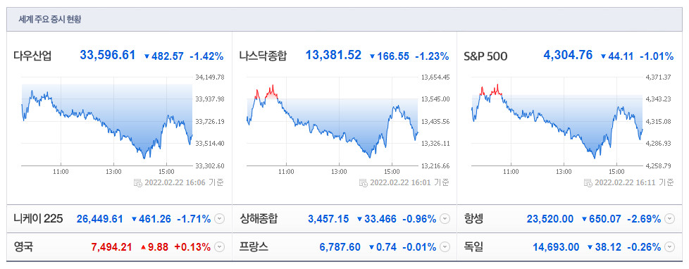 2월 22일(화) 증시캘린더 / 해외마감시황 (0) | 2022.02.22 |