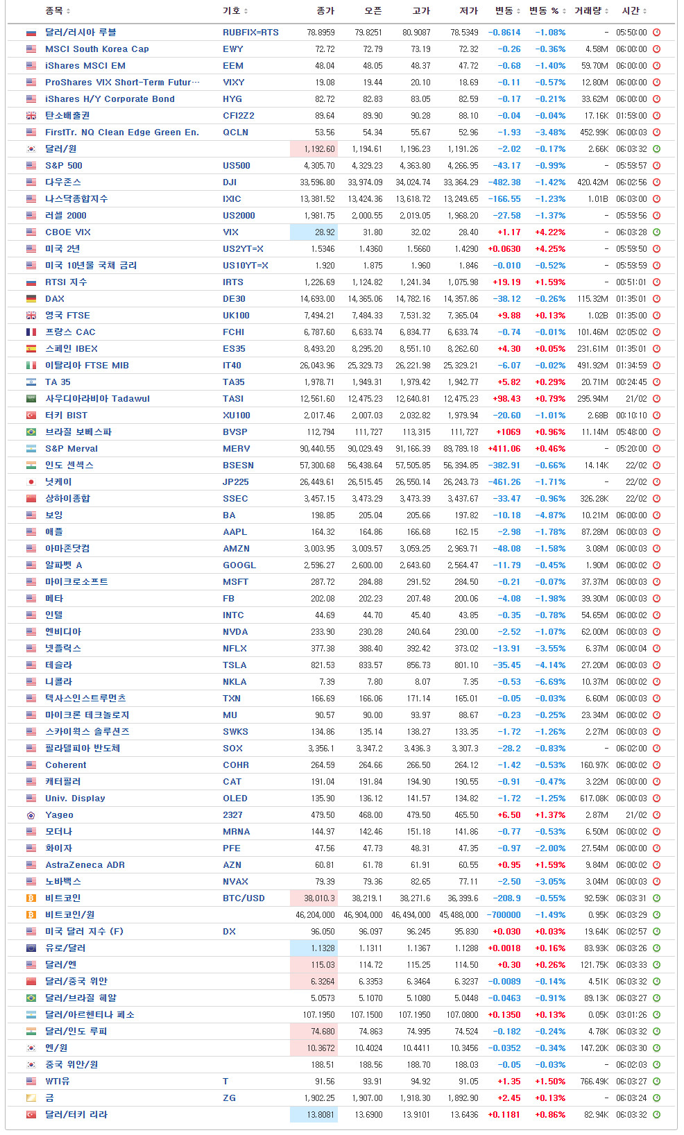 [글로벌시장 지표 / 2월 23일 오전 6시 현재]