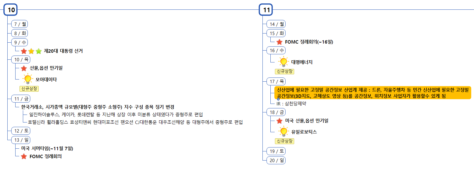 1) 증시캘린더는 개인적으로 관련된 소식을 확인후 작성한 일정이라 변동 또는 오류의 소지가 있습니다.