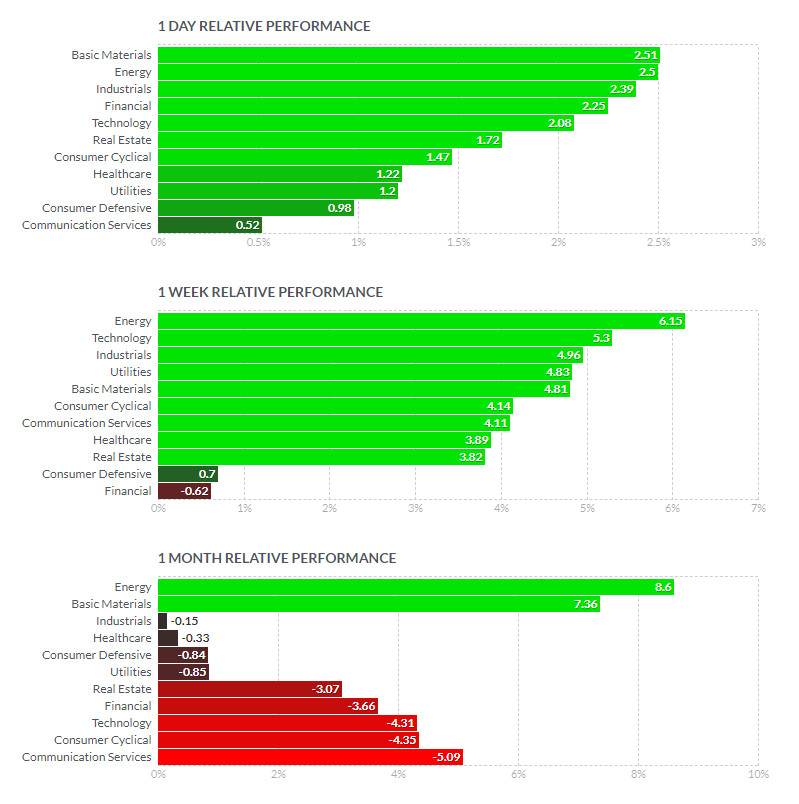 유틸리티 | XLU | 68.2 | 1.2% | 햇빛 | -1.3% | -0.3% | 14.6% |