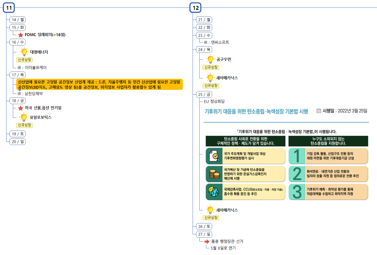 1) 증시캘린더는 개인적으로 관련된 소식을 확인후 작성한 일정이라 변동 또는 오류의 소지가 있습니다.