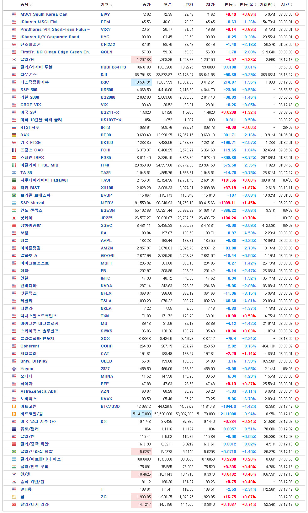 [글로벌시장 지표 / 3월 4일 오전 6시 현재]
