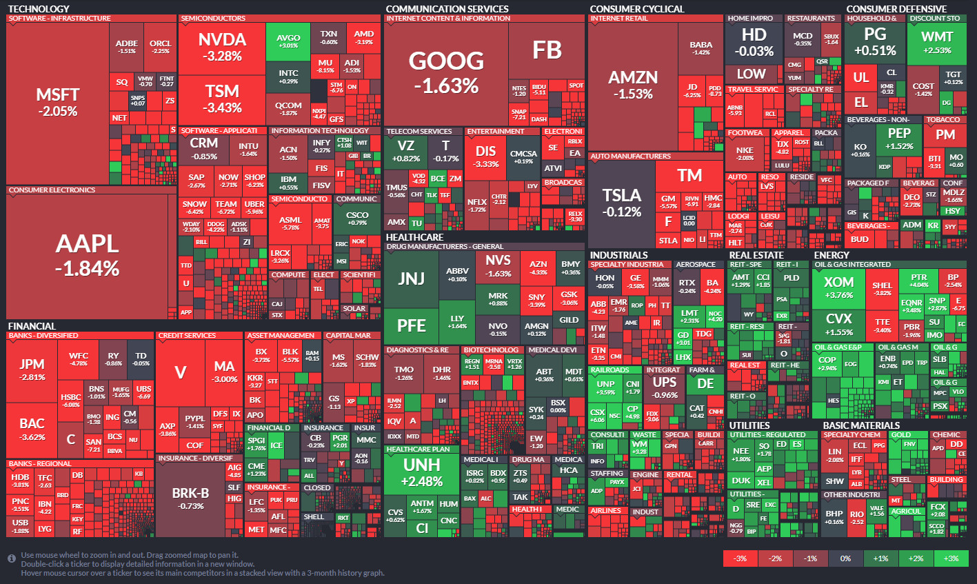 업종별로 살펴보면 탐사 및 시추, 소재, 산업재 등이 1% 넘게 밀리며 하락세를 견인했다.