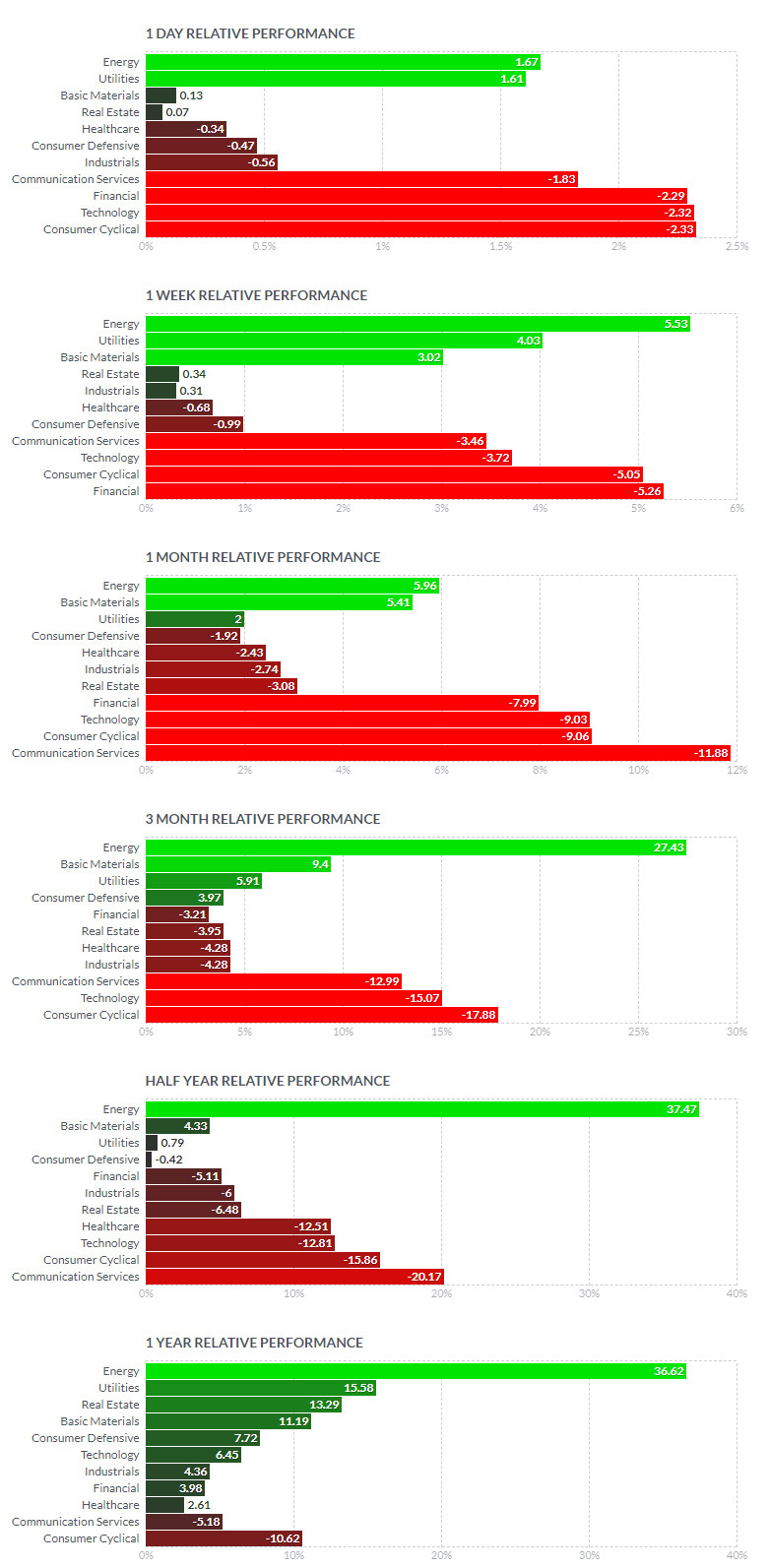 금융 | XLF | 37.2 | -1.9% | 안개 | -7.1% | -4.3% | 9.8% |