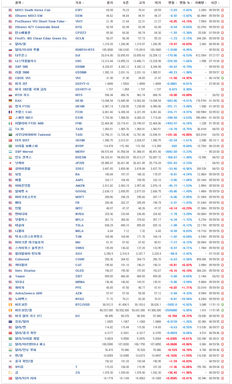 [글로벌시장 지표 / 3월 7일 오전 6시 현재]