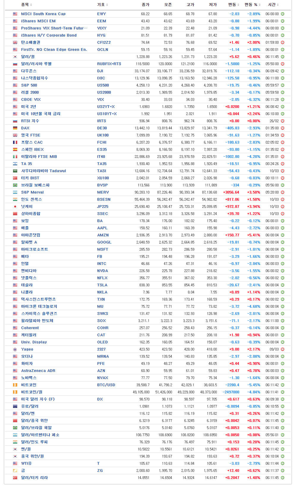 [글로벌시장 지표 / 3월 11일 오전 6시 현재]