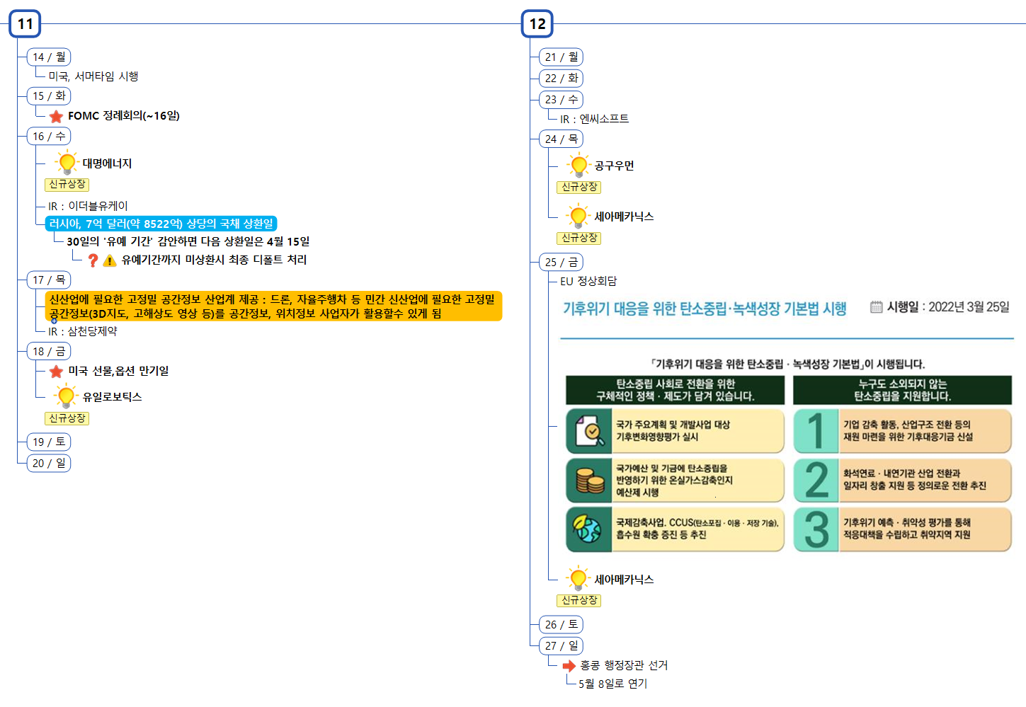 1) 증시캘린더는 개인적으로 관련된 소식을 확인후 작성한 일정이라 변동 또는 오류의 소지가 있습니다.