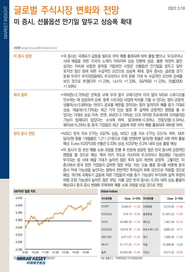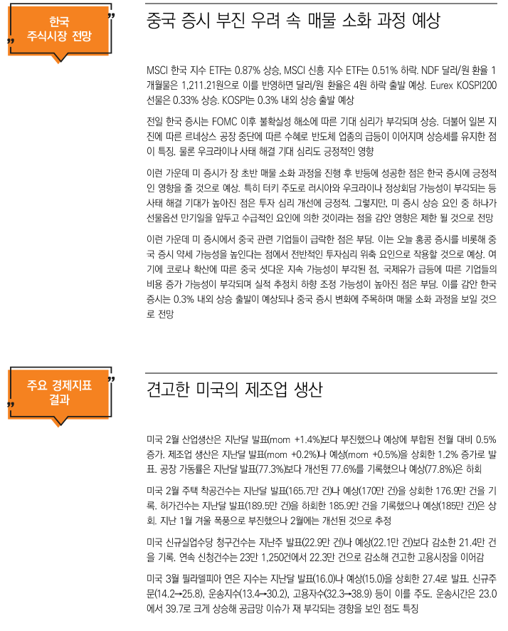 [신영증권 자산전략팀] 22.3.18 모닝 브리프