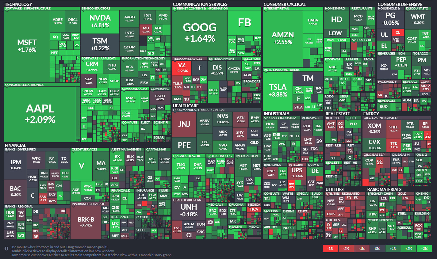 세일즈포스(+4.0%), 애플(+2.1%), 엔비디아(+6.8%) 등의 기술주가 이날 오름세를 주도했다.