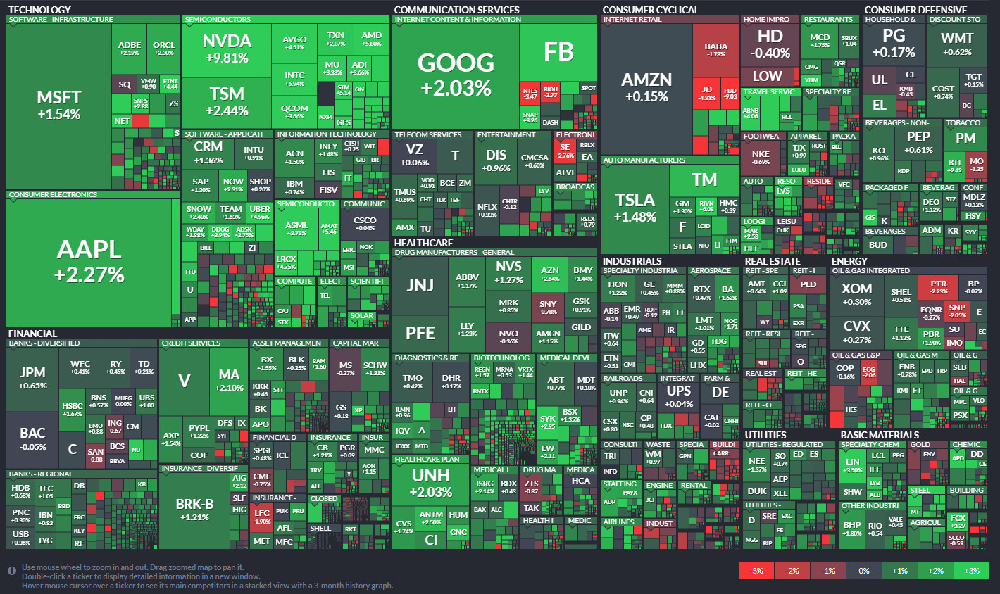 •아침 전일 하락을 뒤로하고 소폭 상승세로 시작한 주요지수는 엔비디아를 중심으로 빅테크에 전반적인 저가매수세가 몰리며 하루종일 상승세를 유지하며 종가 고가 마감