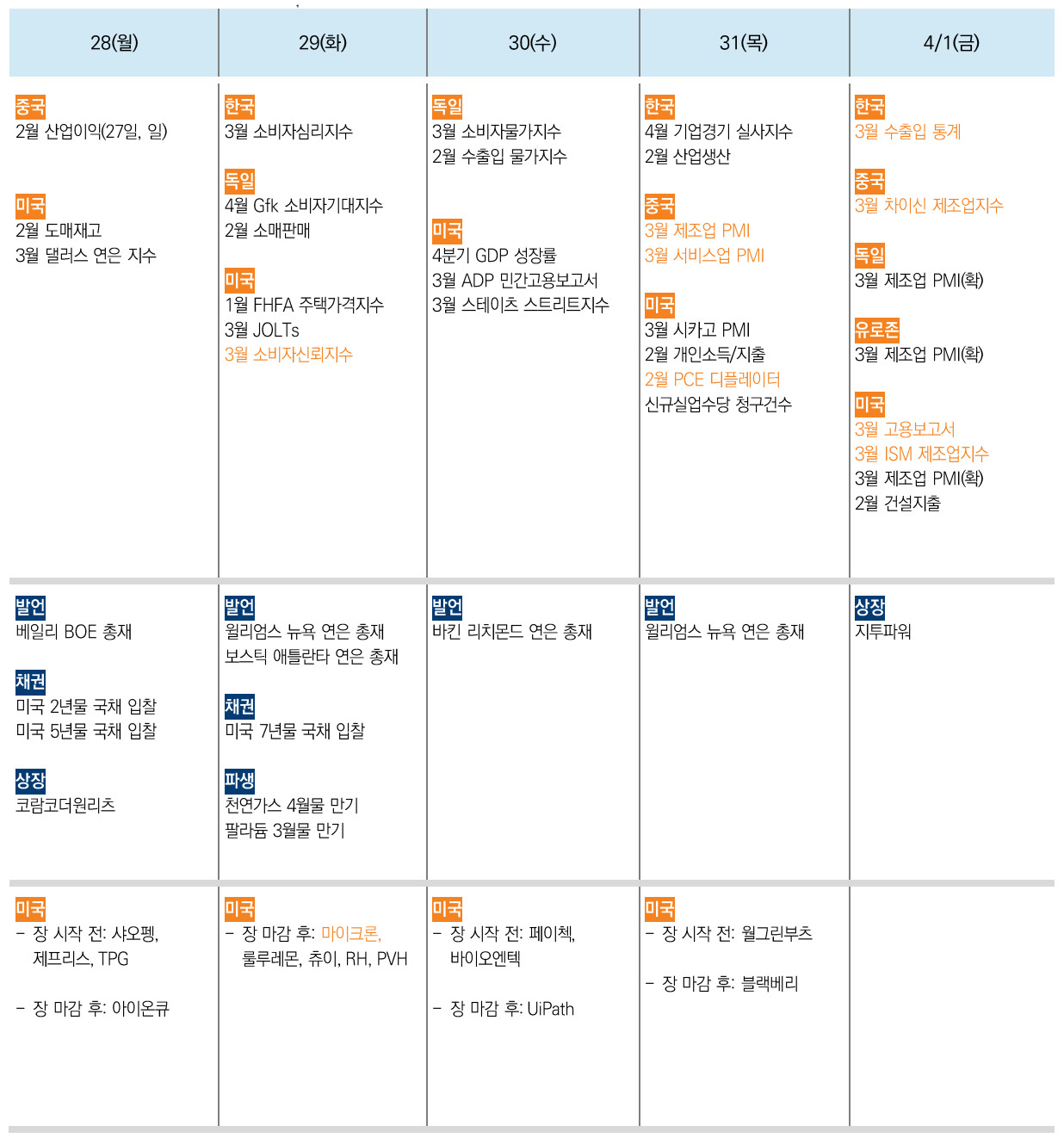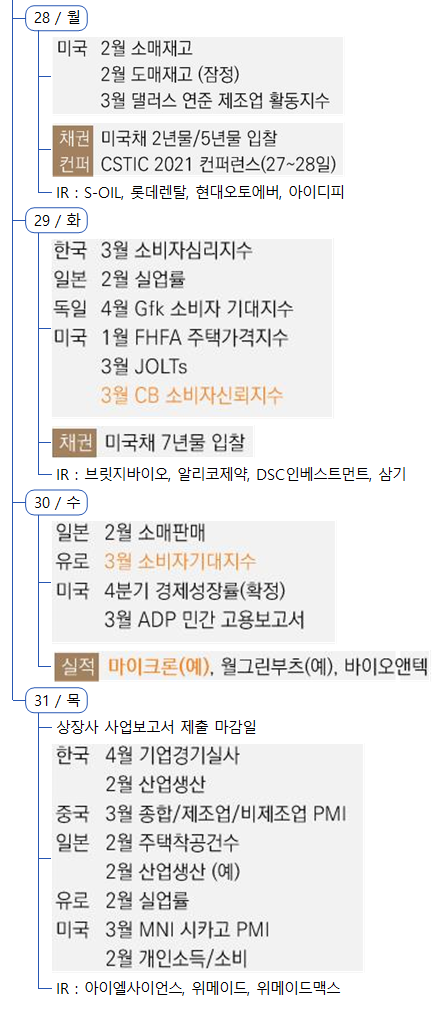 1) 증시캘린더는 개인적으로 관련된 소식을 확인후 작성한 일정이라 변동 또는 오류의 소지가 있습니다.