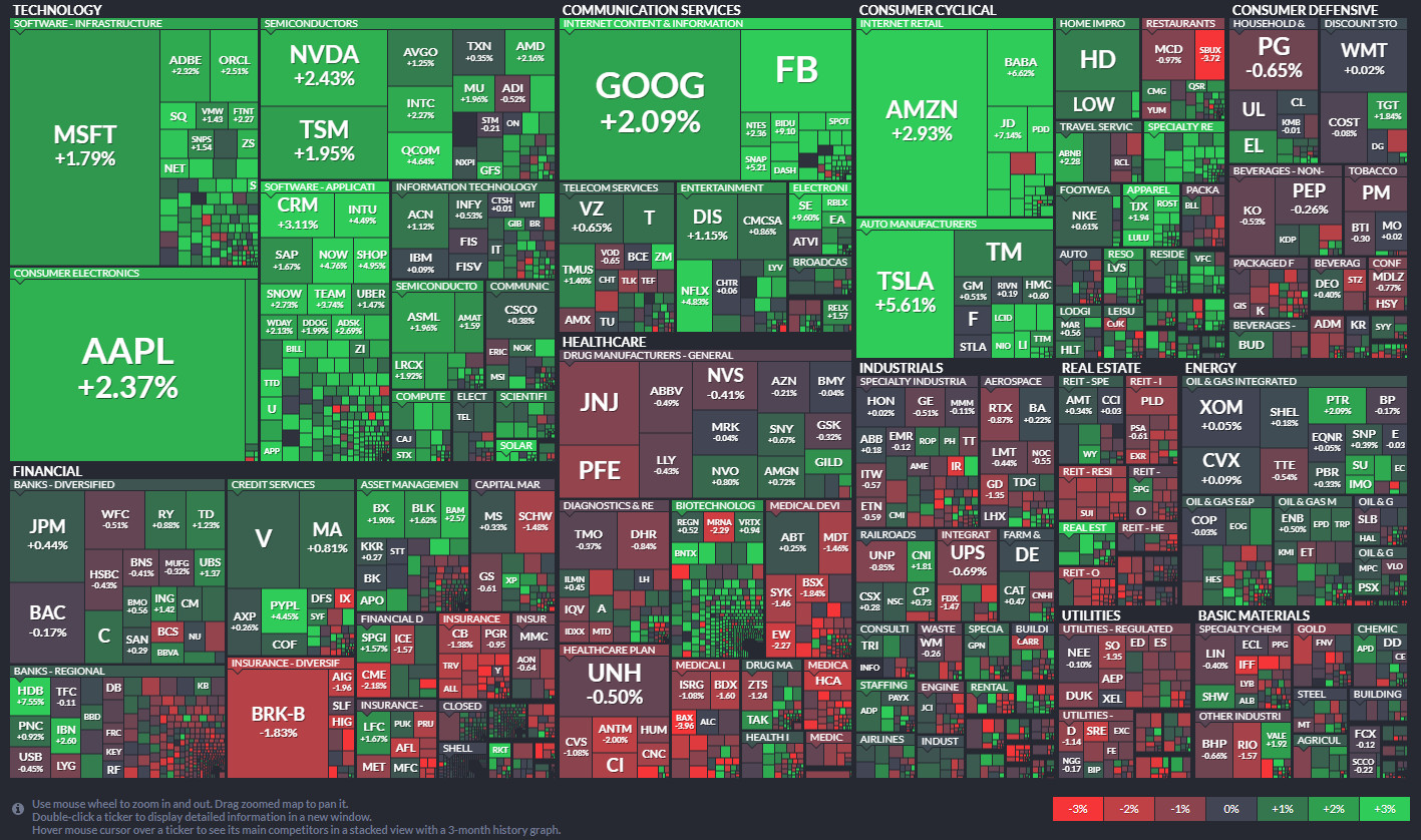 기술주의 강세가 이날 시장 상승을 이끌었다. 테슬라의 일론 머스크 최고경영자(CEO)의 지분 매입 소식에 트위터의 주가는 전장 대비 27% 뛰어올랐다. 테슬라의 주가 역시 1분기 차량 인도규모가 전년 대비 68% 증가했다는 소식에 5.61% 상승 마감했다.