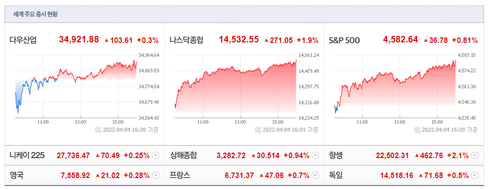 | 4월 6일(수) 증시캘린더 / 해외마감시황 (0) | 2022.04.06 |