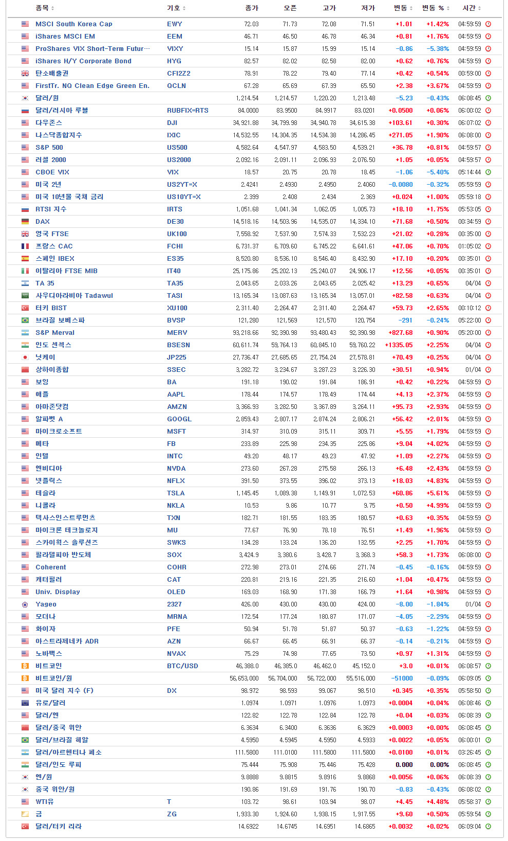 [글로벌시장 지표 / 4월 5일 오전 6시 현재]