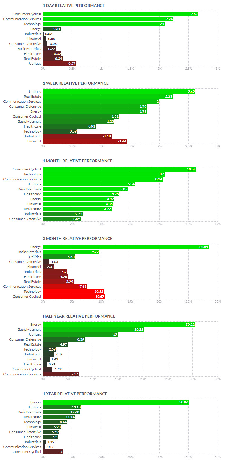 | 자유소비재 | XLY | 189.4 | 2.3% | 햇빛 | 12.4% | -4.3% | 7.6% |