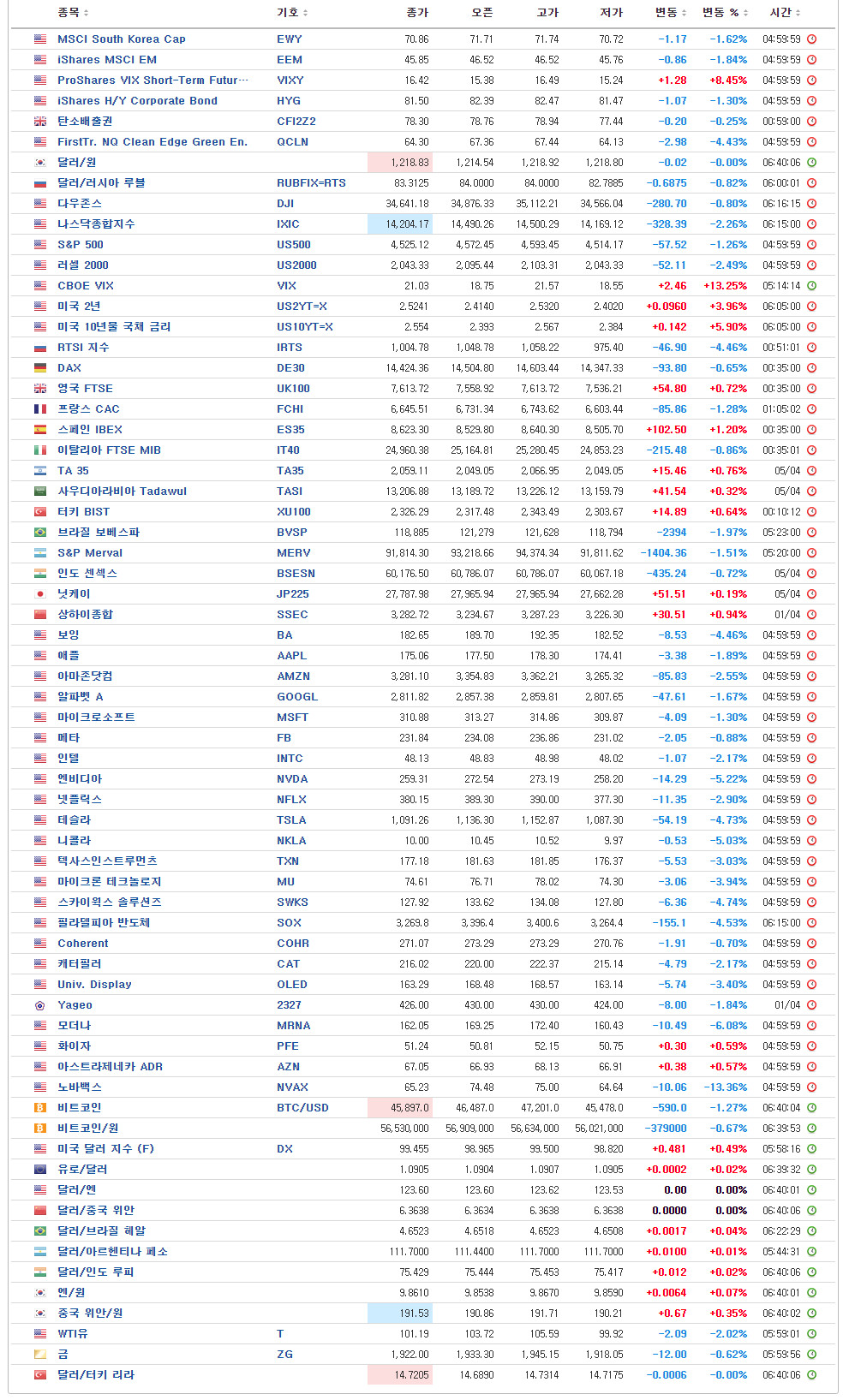 - U.S. Market Closing – 05:00 기준