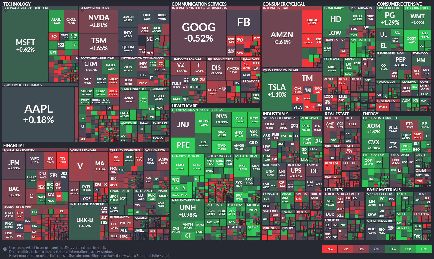 섹터별 ETF는 자유소비재(XLY/+0.5%)와 헬스케어(XLV/+1.9%)섹터가 상승 마감. 미국의 자동차 생산업체 포드 모터(F/-2.9%)의 글로벌 공급망 악화에 따른 전망 악화가 제기되며 자유소비재 섹터 하락을 주도. 한편 월스파고의 Zachary Fadem 애널리스트는 미국의 주택 개량 용품 시장의 수요 둔화세를 제시하며 이는 미국 내 강력한 인플레이션 여파로 인한 저소득층의 실질소득 감소를 주요한 원인으로 지목. 이러한 소식에도 불구하고 미국의 주택 설비 장비 제조업체 홈디포(HD)의 주가는 1.4%상승하며 자유소비재 섹터 상승을 지지. 반면 헬스케어 섹터에서는 유나이티드헬스 그룹(UNH/+1.0%)의 코로나19 확산 감소에 따른 견고한 실적 성장세가 언급되며 헬스케어 섹터의 상승 요인으로 작용.