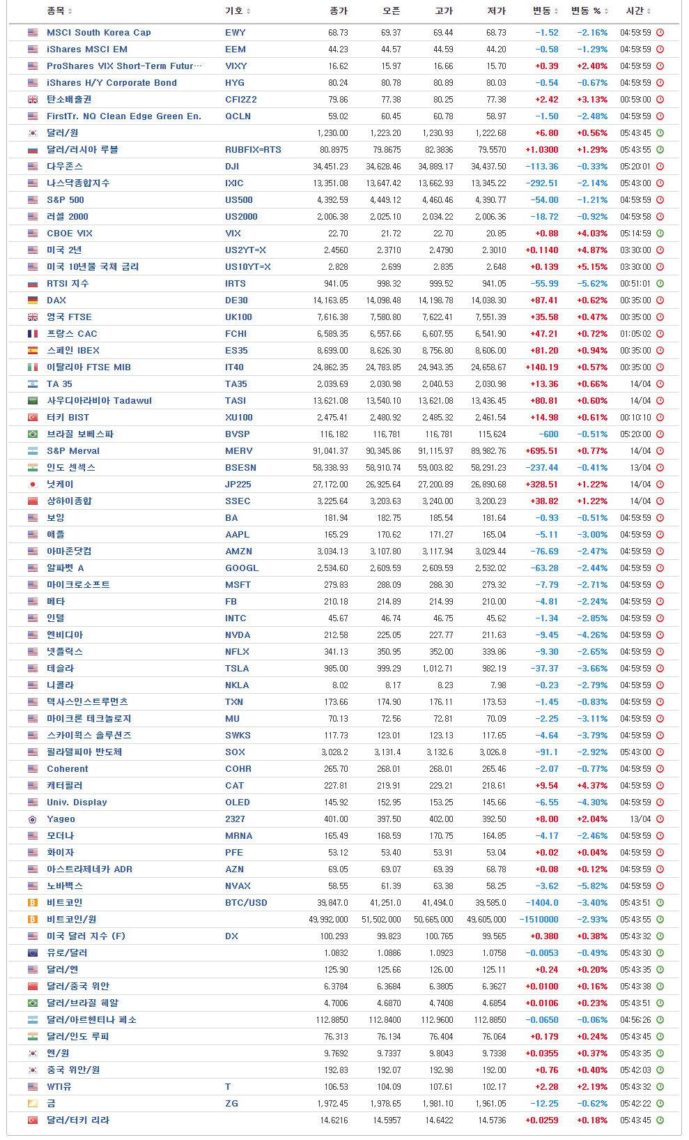[글로벌시장 지표 / 4월 15일 오전 6시 현재]