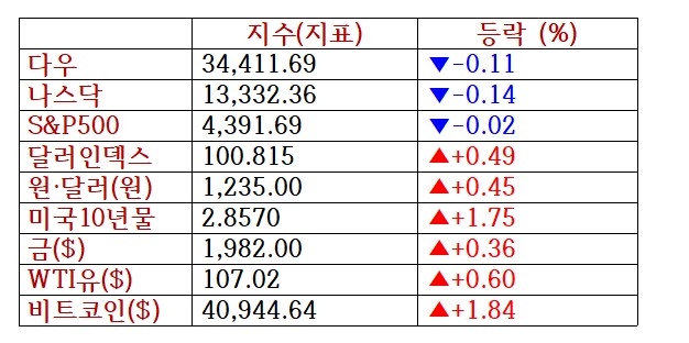 | VIX지수 | 22.17 | -0.53 | -2.3% |