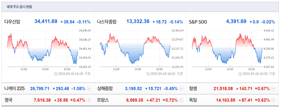 | 4월 18일(월) 증시캘린더 / 해외마감시황 (0) | 2022.04.18 |