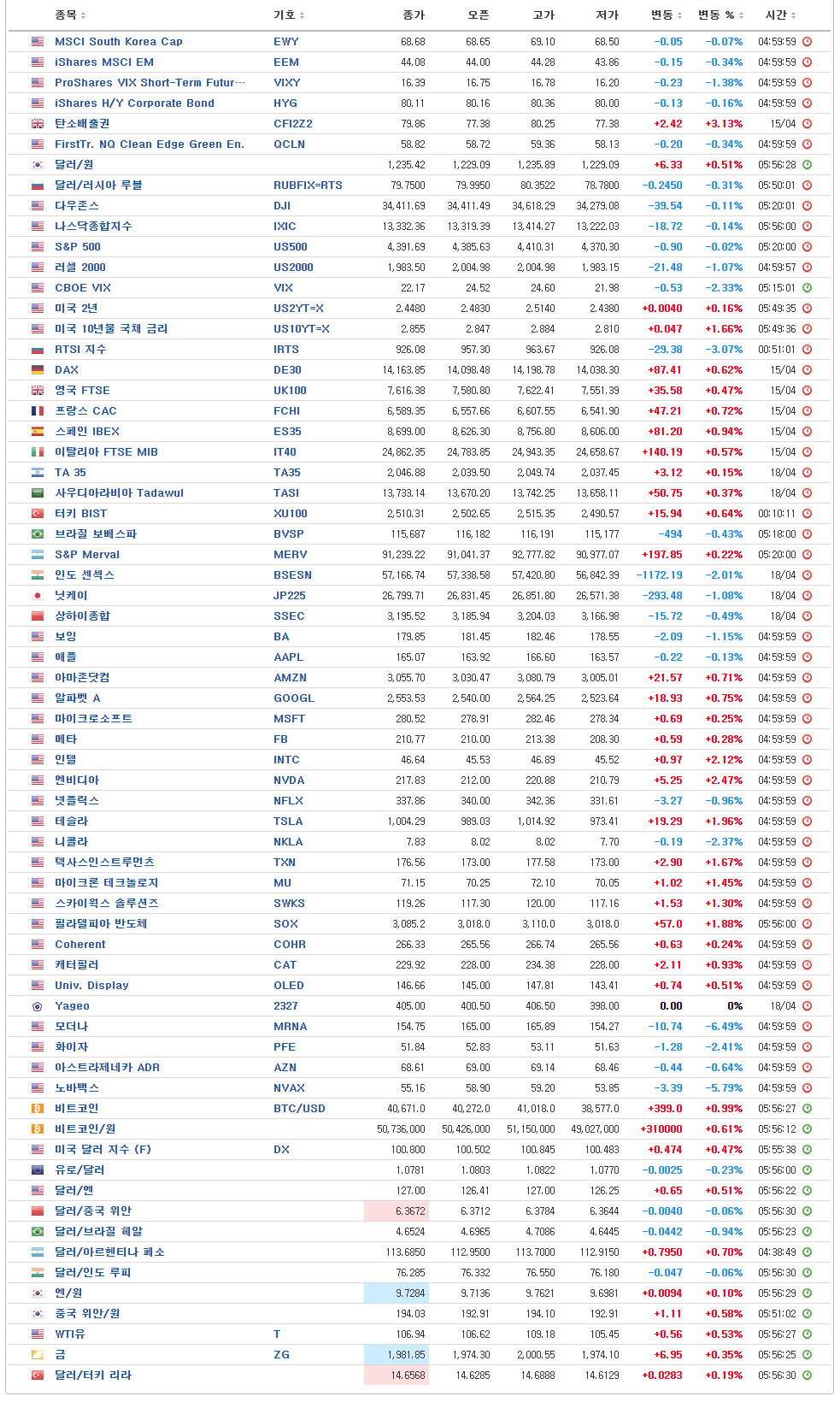 [글로벌시장 지표 / 4월 19일 오전 6시 현재]