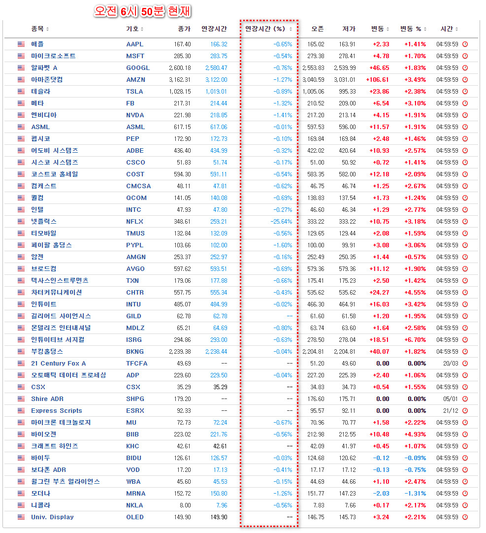 -나스닥 Top10 : 상승 2 vs 하락 8