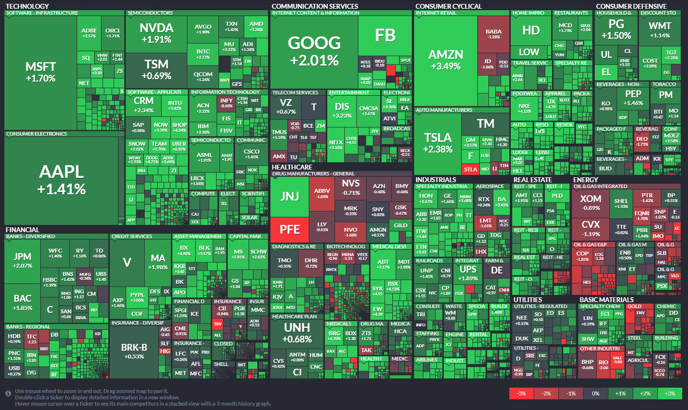 | DOW | 34,911.30 | 499.61 | 1.5% | 27/3/0 |
